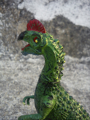 Uma criança, que brincava alegremente com um dinossauro, atirou-o ao ar com tal força que a figura foi longe demais e na queda...partiu-se!